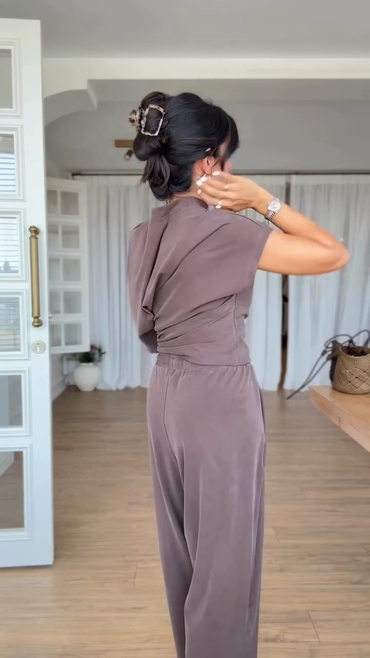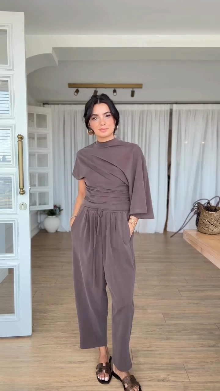 Elevate your casual - chic wardrobe with this Plum Purple Asymmetric Top & Wide - Leg Pants Set. The unique asymmetric design, matching pants, and relaxed fit create a stylish, comfortable look. Perfect for everyday outings, brunch dates, or laid - back gatherings. Pair with a metallic bag and textured shoes to complete the effortlessly trendy ensemble.