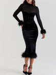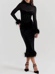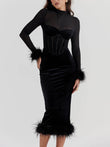 Crafted from sumptuous black velvet, this dress not only feels luxurious but also exudes a touch of vintage glamour. The midi length adds an extra layer of sophistication, making it perfect for formal occasions, cocktail parties, or a romantic night out.
