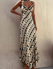 Exclusive Melody Satin Ethnic Print Smocked Back Midi Dress