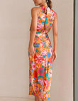 Floral Halter Neck Elastic Waist Maxi Dress