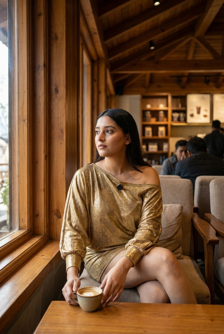 Pair it with heels and statement earrings for a glamorous evening look, or style it with minimal accessories to let the shimmer speak for itself.