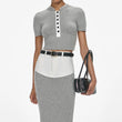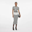 Gray Knitted Denim Patchwork Midi Skirt Set