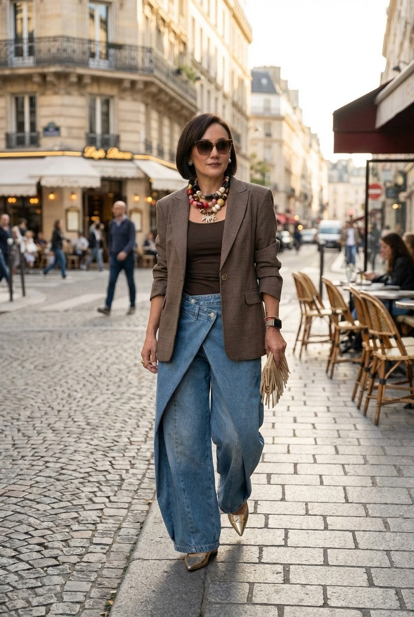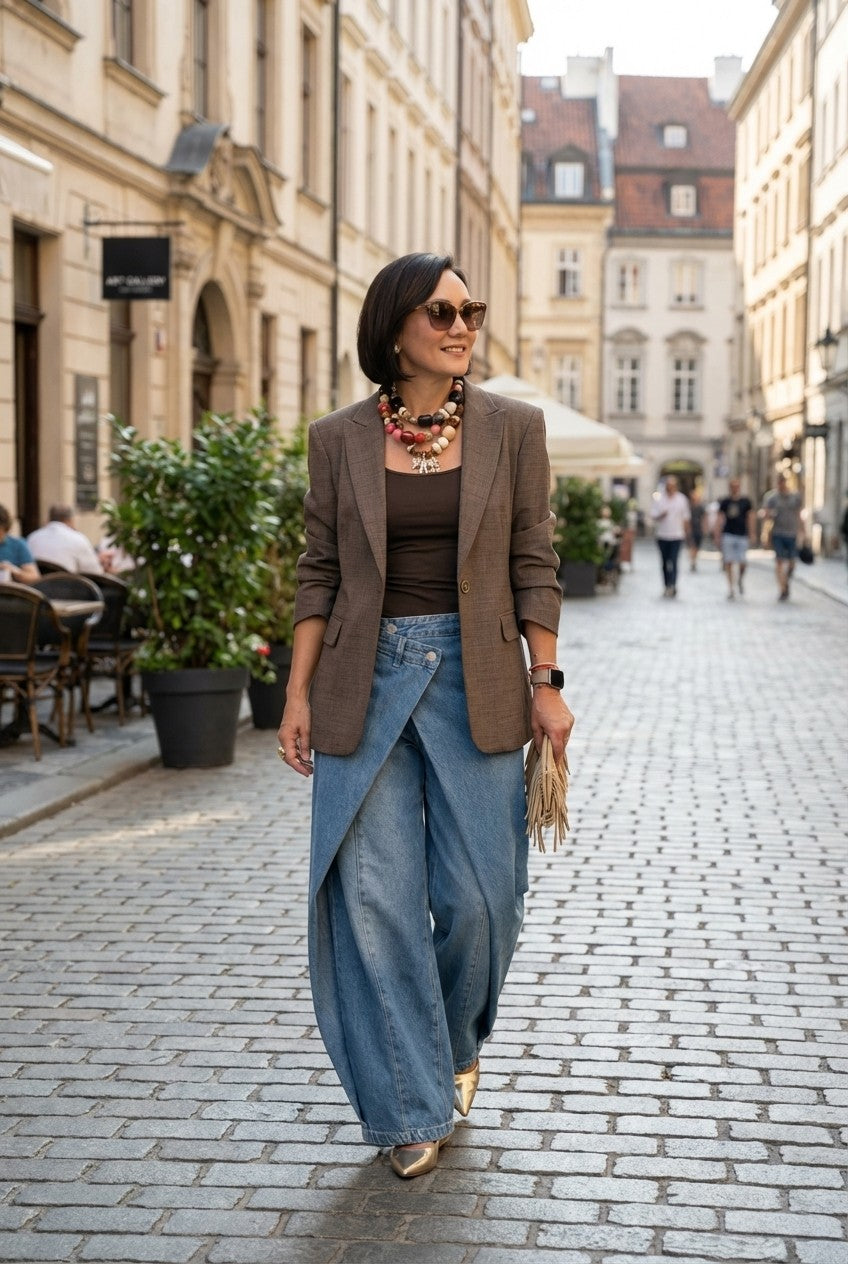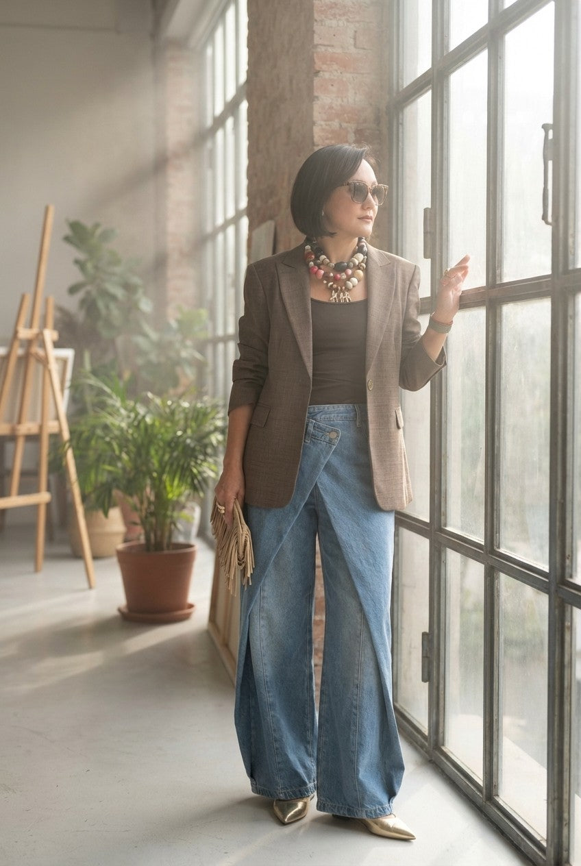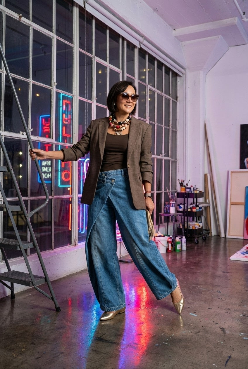 Pair with a fitted tank or blazer and pointed heels for a polished look, or keep it casual with sneakers and a relaxed tee for everyday wear.