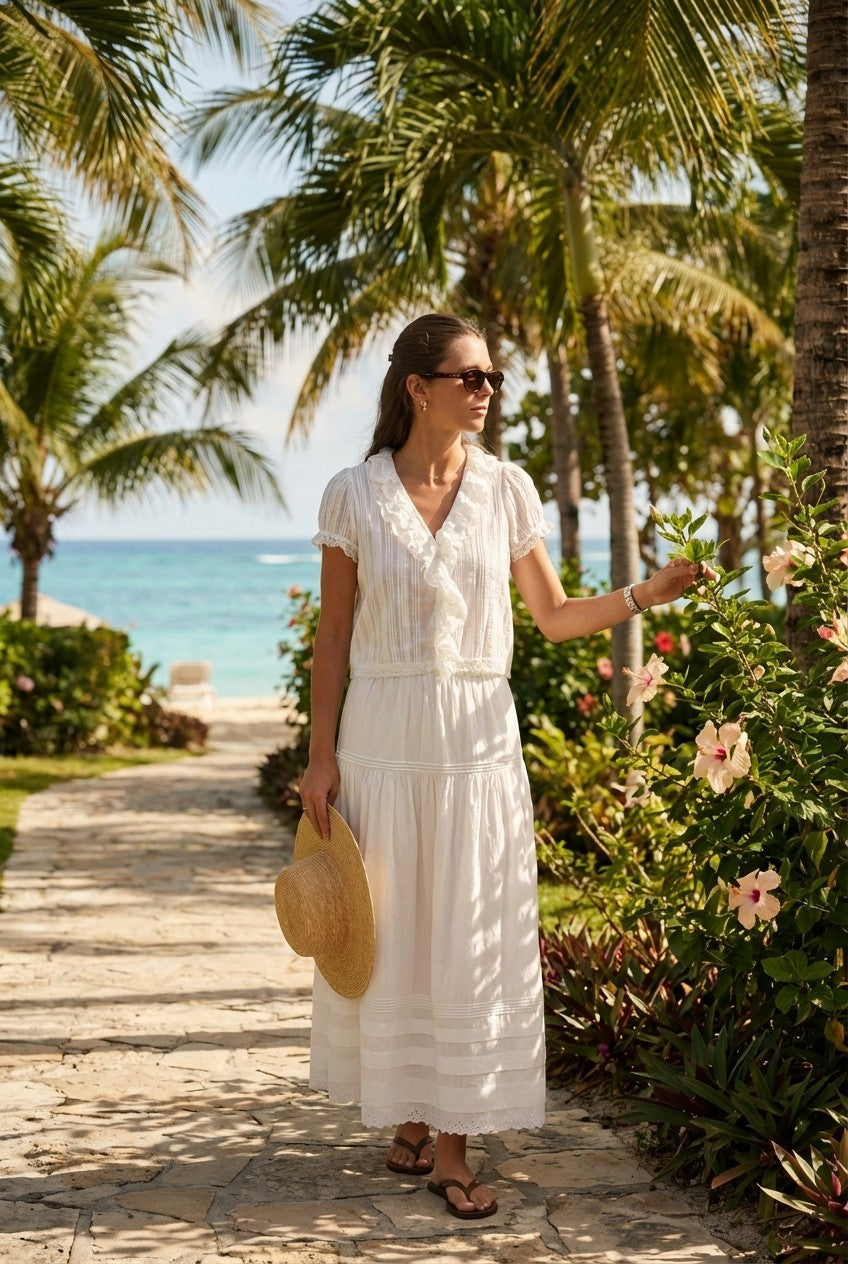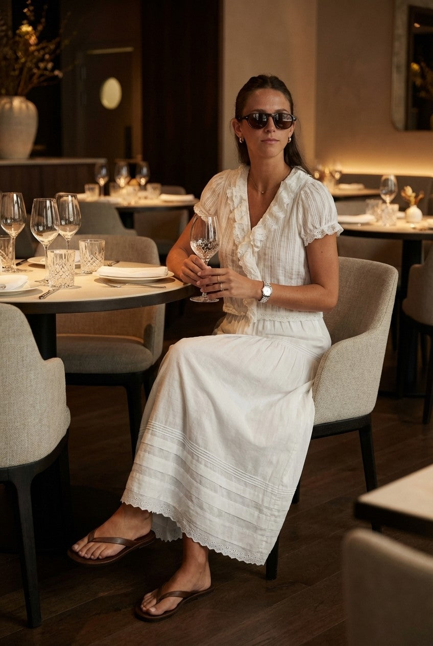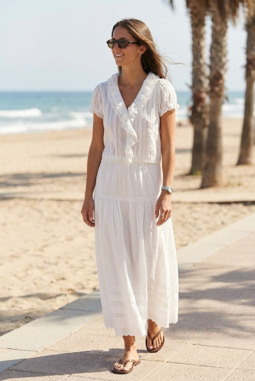 The Ivory Breeze Midi Dress captures the essence of summer simplicity with its airy silhouette and soft texture, perfect for sunlit days and relaxed evenings.