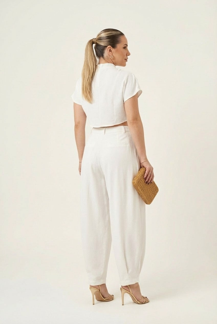 Wear it as a complete set for a clean, coordinated look, or style each piece separately—pair the top with denim or the pants with a fitted tank for effortless versatility.