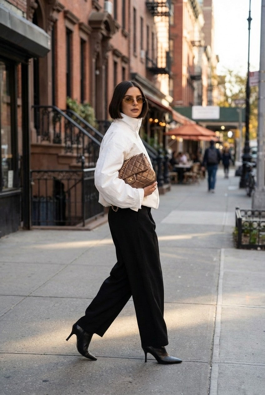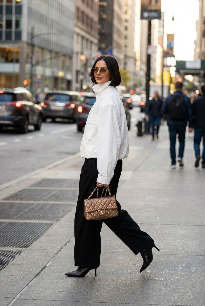 Pair with wide-leg pants, denim, or casual trousers for an effortless everyday outfit with a modern edge.