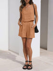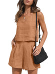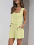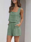 Stay stylish and comfortable in our summer-fresh sleeveless tank top and shorts set.