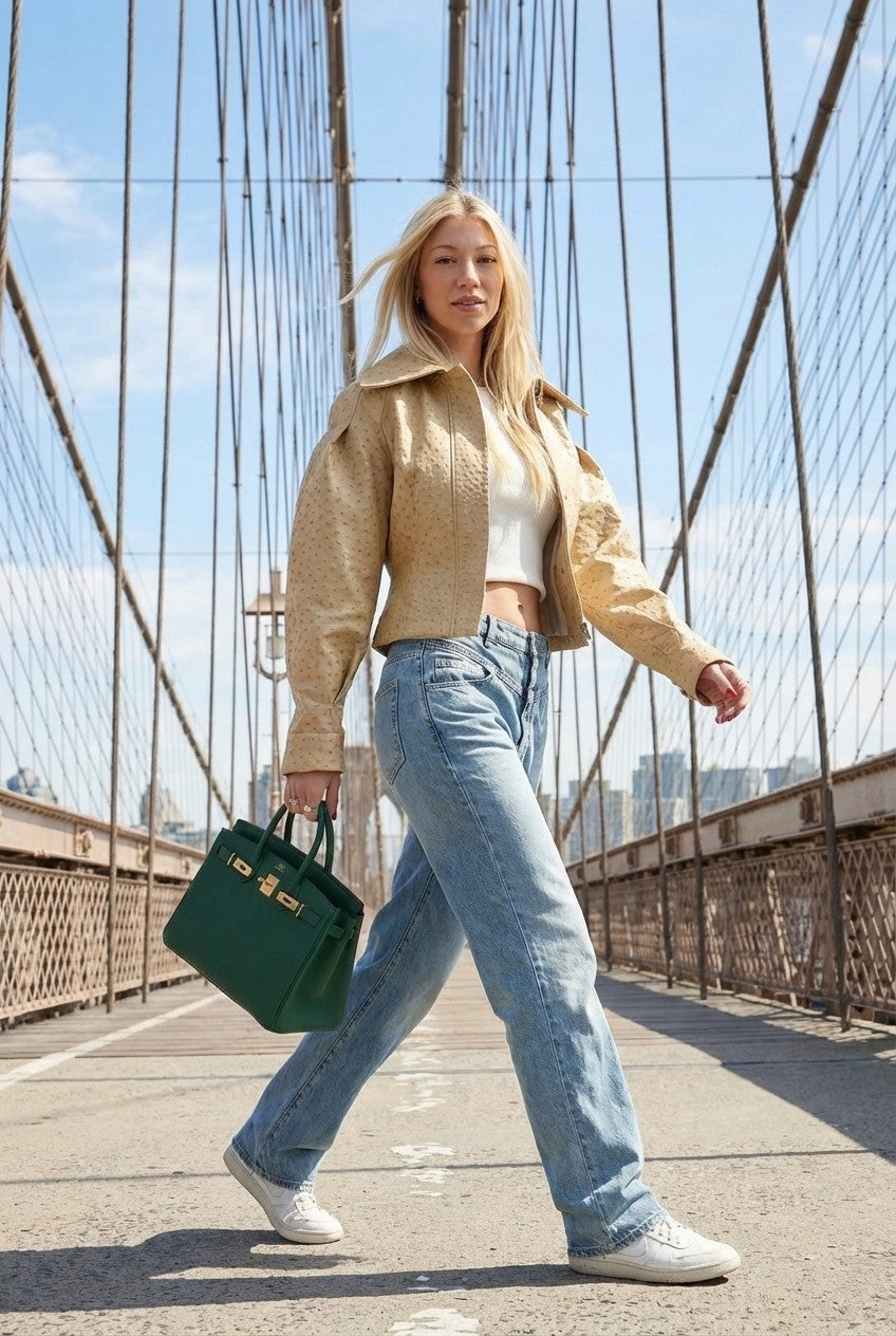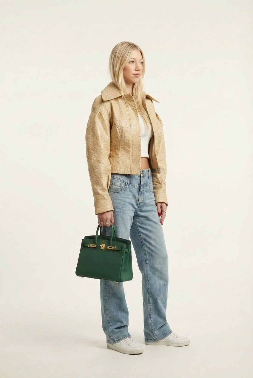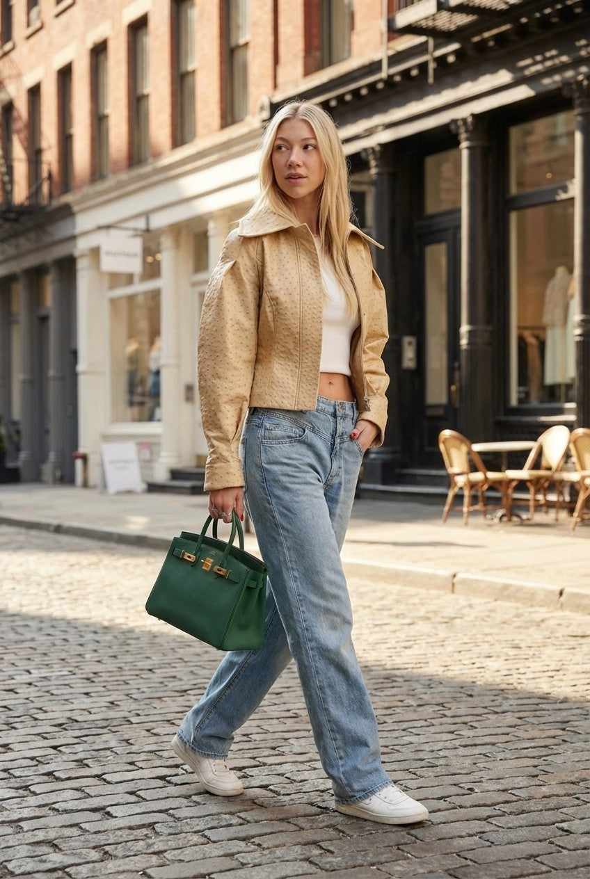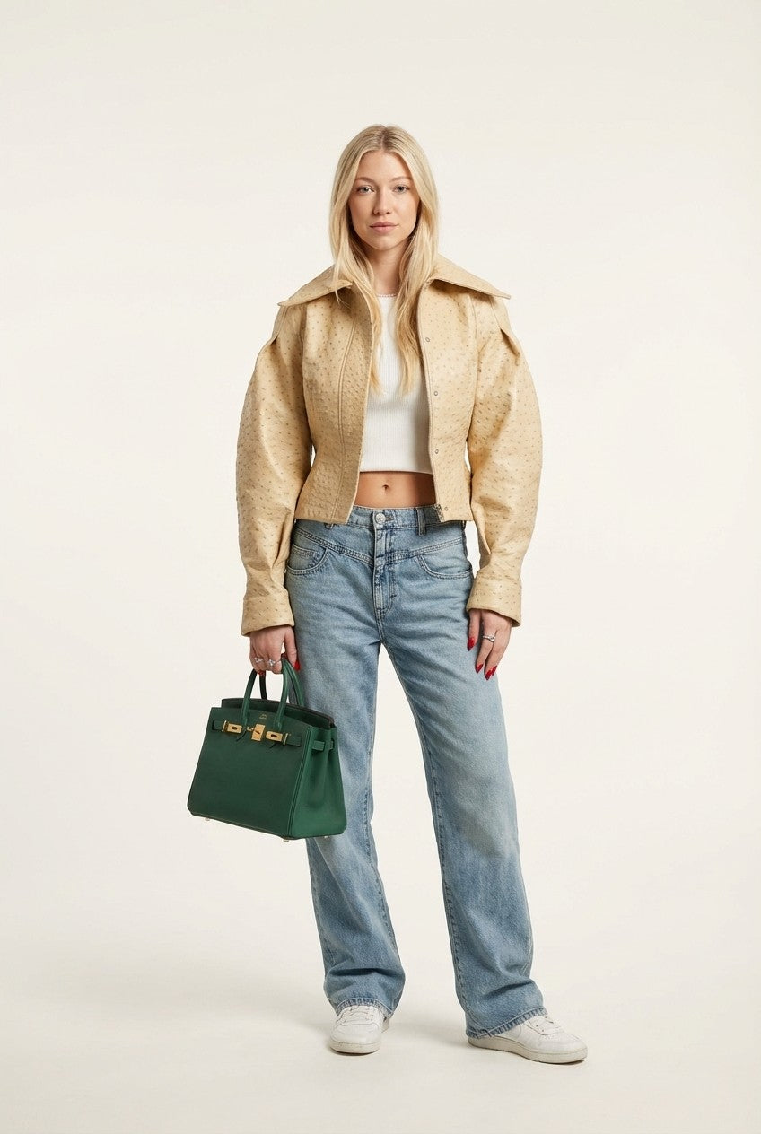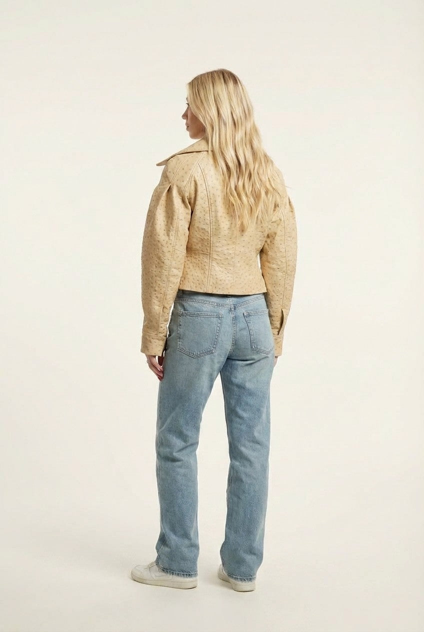 Chic and modern, this cropped jacket features a structured silhouette with subtle texture—perfect for elevating everyday outfits.