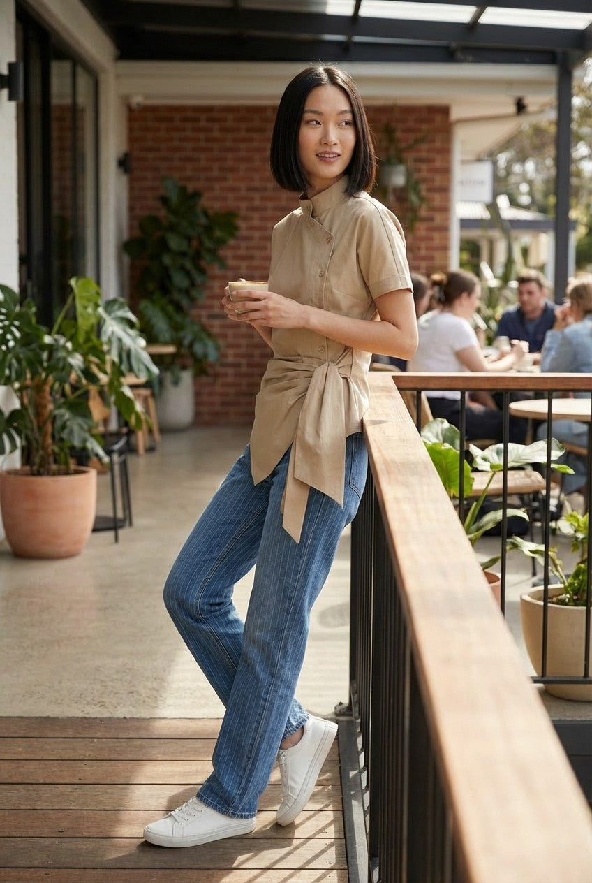 Style It With: Pair this statement top with pinstriped trousers and white sneakers for an effortlessly elevated casual ensemble.