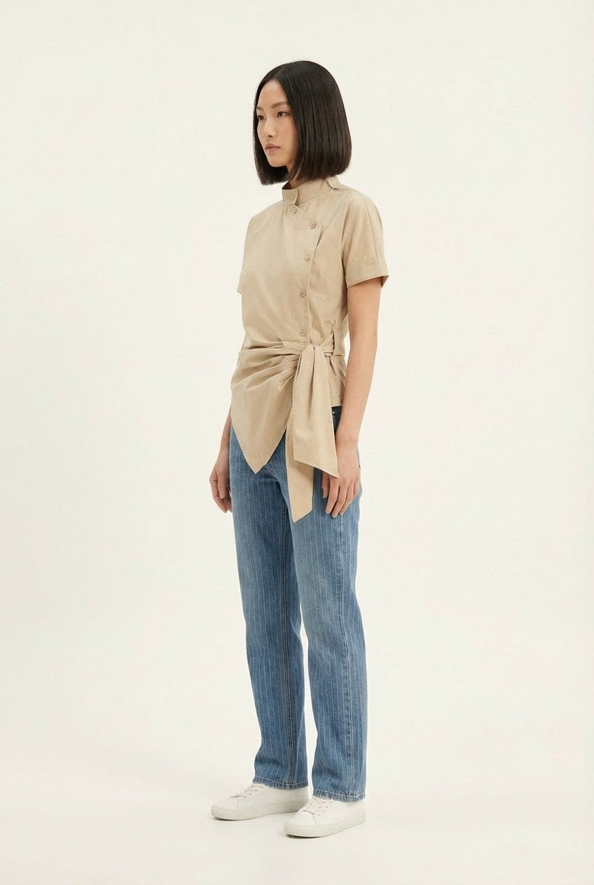 Redefine modern sophisticated style. This architectural blouse features a unique asymmetric button-down front and a flattering side tie, perfect for creating a polished day-to-night look.